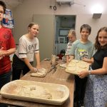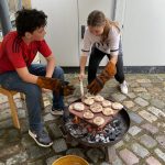 Am 28. August 2025 gingen wir fröhlich zur Schule, in der Hoffnung, es würde ein schöner Tag werden. Diese Hoffnung erlitt eine schwere Erschütterung – im wahrsten Sinne des Wortes -, denn bald darauf fing es an zu schütten. Manche quengelten, dass sie lieber mit der Bahn fahren wollten, doch wir anderen waren mutig genug uns dem Regen zu stellen. Also stürzten wir uns in die Fluten zur Außenstelle des Landesmuseums für Vorgeschichte. Dort begrüßten uns zwei nette Mitarbeiter:innen. Nachdem wir ein bisschen getrocknet waren, erklärten die beiden uns den Ablauf. Dann teilten sie uns in zwei Gruppen auf. Einmal die BACK-GANG & die KOCH-GANG. Die BACK-GANG machte Teig für Fladenbrote. Sie wurden nochmal in zwei Grüppchen eingeteilt; die einen gingen hinaus zum Feuer, um die Brote, die der Rest gemacht hatte, auf Ziegelsteinen über dem Feuer zu backen.